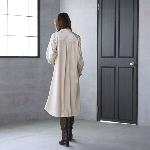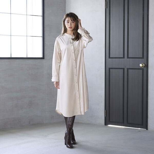 [型番:2221-17218]ぬくもり感のあるコーデュロイ素材のシャツワンピース。