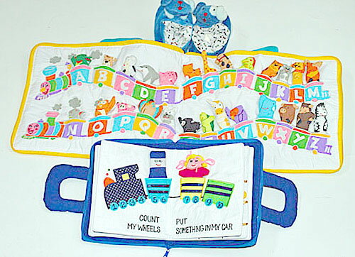 ◎対象年齢:3歳以上 ◎サイズ:24x18x4cm(取っ手含まず) ◎素材:ポリエステル・綿/中綿(ポリエステル)他 ◎仕様:3方ファスナー開閉 ◎ブランド:キッズパワーKIDS POWER ◎内容:全12ページ PAGE 1 BUTTTON THE FLOWERS "お花のボタン留め" PAGE 2 ZIP WHAT'S INSIDE? "てんとう虫のファスナー開閉" PAGE 3 MATCH MY COLORS "パレットの色あわせ page 4 SNAP ME ON MY SHAPES "スナップ留めかたち合わせ" page 5 LACE THE SHOE"くつひも結び page 6 COUNT MY WHEELS "車輪1〜10の数字をかぞえて" page 7 PUT SOMETHING IN MY CAR "マスコット人形 をきしゃに乗せて!! page 8 BUCKLE MY BELT "ベルトのバックル留め" page 9 STOP WAIT GO "ベルクロ付き交通標識信号" page10 FEELY FINGERS "4種類の布地にさわって感じて" page11 PUT YOUR HAND INTO MY MITTEN "ミトンに手を入れて!" page12 WHAT TIME IS IT?"何時かな?" ♪
