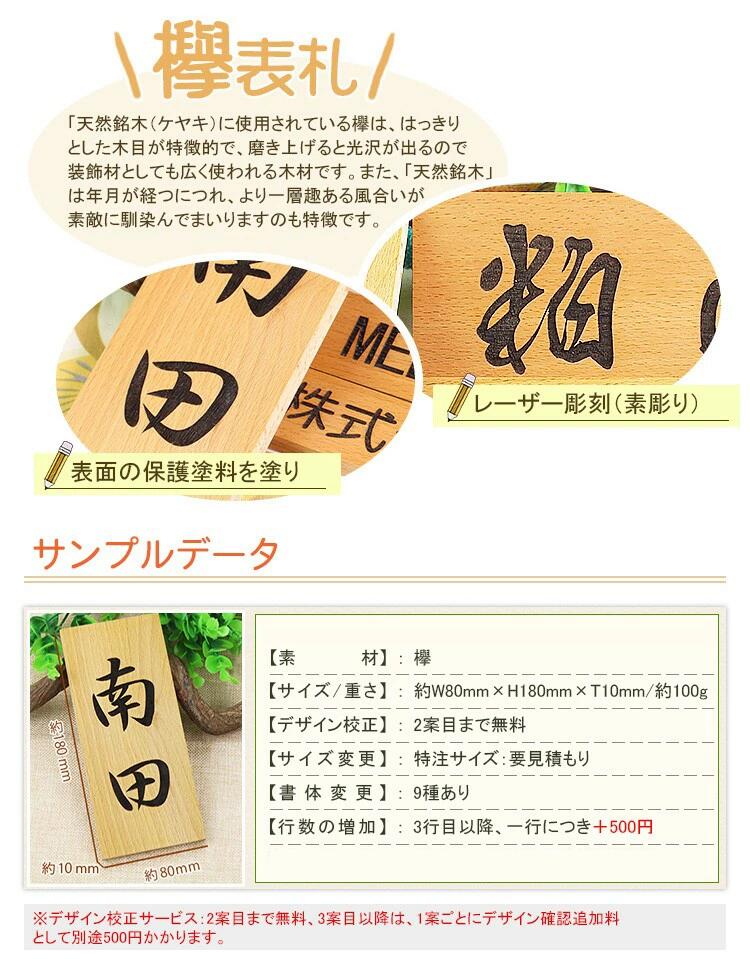 天然欅木表札 【送料無料】 ●特長 木の温もりと、筆文字の和の風情を味わっていただける木製表札です。