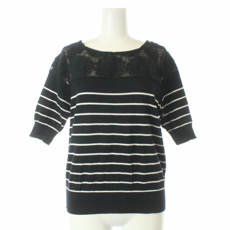 【中古】ドゥアルシーヴ DOUX ARCHIVES ボーダー ニット カットソー 五分袖 シアー切替 シースルー 刺繍 花 M 黒 ブラック /ST ■MA レディース 【ベクトル 古着】 220617