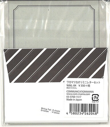 雑貨【ミニレターセット】ワカマツカオリ「男性とユリ(ブラック)」(WML-04)【手紙/便箋/かわいい/かっこいい/おしゃれ/小さめ/メッセージ/封筒/ワカマツカオリ/男の子/ボーイ/スーツ/花/植物/ステーショナリー/ステイショナリー】