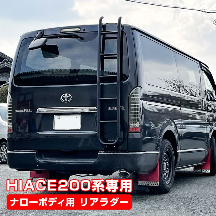 商品名 ハイエース200系 スチール製リアラダー 適合情報 適合車種:トヨタ ハイエース200系 適合型式:KDH20# TRH20# GDH20# 適合年式:H27.2~ 適合車種:トヨタ レジアスエース200系 適合型式:KDH20# TRH20# GDH20# 適合年式:H27.2~ ※1型 2型 3型前期 3型後期 4型 5型対応可能 ※標準ボディ専用となります。