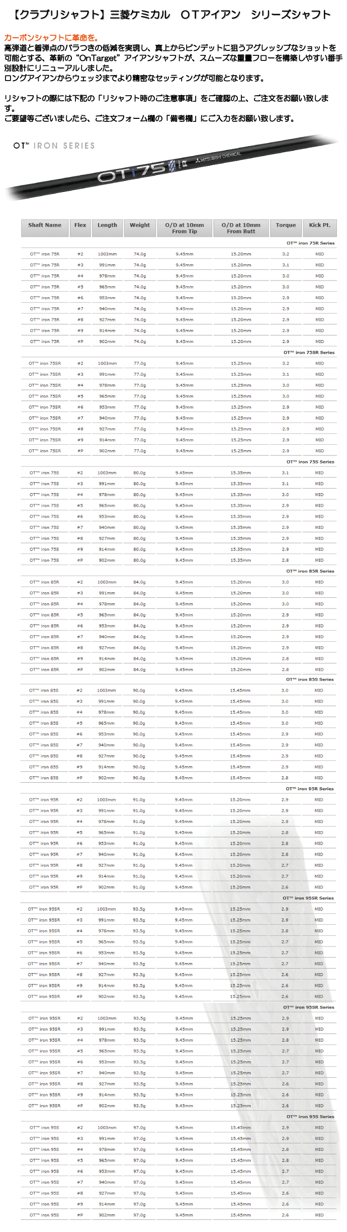 ※リシャフトの際には下記の「リシャフト時のご注意事項」をご確認の上、ご注文をお願い致します。