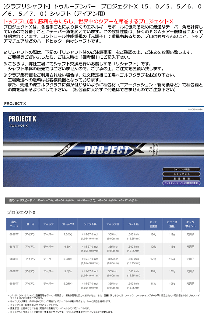 ※リシャフトの際は、下記の「リシャフト時のご注意事項」をご確認の上、ご注文をお願い致します。