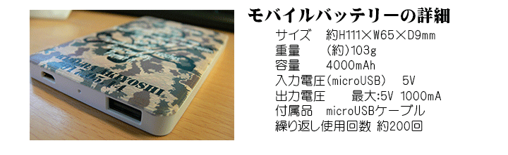 商品名 モバイルバッテリー 迷彩柄 当店オリジナルデザイン×お客様の入れたいお名前をUVプリントしたあなただけのオリジナルモバイルバッテリーが出来上がります。
