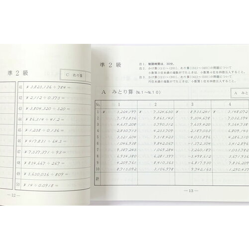 そろばん教室の教本の定番 佐藤出版の日商珠算検定 練習問題集 準2級 15回分掲載 (図解や解説はありません) 商品説明 品名/ 珠算検定練習問題集 準2級 平成26年度版 主催・日本商工会議所 日本珠算連盟 サイズ/B5判 掲載回数/15回 ページ数/72ページ 出版社/佐藤出版株式会社 特徴 「みとり算・かけ算・わり算」を1回分とした 15回の掲載。