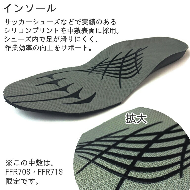 New!(2015年1月発売) 新商品 FFR70S New!(2015年1月発売) 新商品 FFR71S ● FFRシリーズ 搭載機能 作業用靴には、安全性と軽量性が求められます。