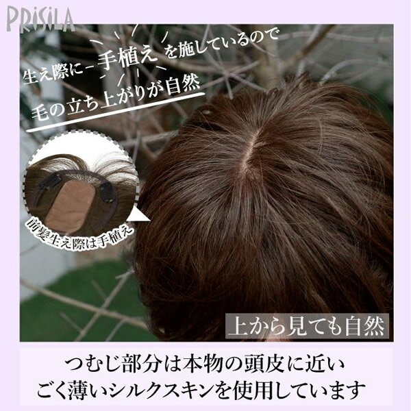 ・スキンサイズを大きくした安心のカバー範囲! ・生え際は手植えになって自然な毛の立ち上がりに! ・つむじ部分は最高級スキンを使用! 医療用ウィッグにも使用されている本物の頭皮に近いごく薄いシルクスキンという素材を採用しています。