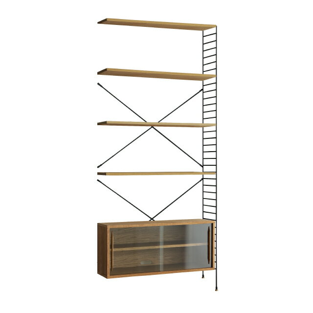 ネジ固定 シール固定 SPECスペック サイズ 本体サイズ:幅 92cm × 奥行き 23cm × 高さ 201cm(各パーツ5cmピッチで調節可)シェルフボード:幅 88cm × 奥行き 20cm × 高さ 2cmキャビネット:幅 88cm × 奥行き 20cm × 高さ 39cm(棚板1枚付 3cmピッチ5段階調節)キャビネット内寸:幅 84cm × 奥行き 13cm × 高さ 35cm【梱包サイズ】幅 24.5cm × 奥行き 203cm × 高さ 4cm(3.9kg)×1幅 115cm × 奥行き 3cm × 高さ 3cm(0.8kg)×2幅 90cm × 奥行き 21cm × 高さ 3cm(2.5kg)×4幅 94cm × 奥行き 22cm × 高さ 44cm(12kg)×1 カラー ブラック×ナチュラル ブラック×ミッドブラウン ブラック×ダークブラウン ホワイト×ナチュラル ホワイト×ミッドブラウン ホワイト×ダークブラウン グレー×ナチュラル グレー×ミッドブラウン グレー×ダークブラウン 素材 フレーム:鉄(粉体塗装)シェルフボード:オーク材突板(NCラッカー)キャビネット:オーク材突板、無垢材、ガラス(NCラッカー) 耐荷重 シェルフボード1枚:7kg 備考 重量:23.6kg組立品(時間:2名で約 27分)※必ず2名以上での組立作業を行って下さい。