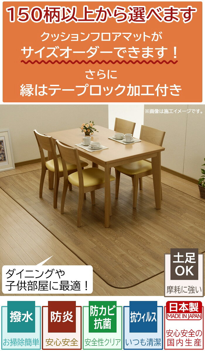クッションフロア フロアマット ビニール床シート 撥水 床マット ラグ ラグマット ビニール製 カーペット サイズオーダー 幅182cm×長さ110cm〜150cm オーダー クッションフロアダイニングラグ (SLy) S1 土足OK 防汚 防カビ 抗菌 防炎 CF 絨毯 撥水マット 引っ越し 新生活